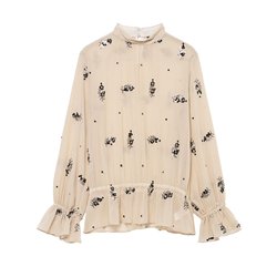 TAOP & ZA 2025 otoño nueva camisa de manga larga con solapa y estampado de flores de temperamento de moda europea y americana para mujer 9115242