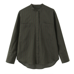 Camisa de Manga Larga con Cuello Alto a Rayas, Estilo Europeo y Americano, Simple y Versátil para Mujer, TAOP&ZA 2025, 210505 4437210