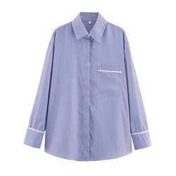 TAOP & ZA Nuevo 2025 Moda femenina Temperamento europeo y americano Solapa a rayas Manga larga Popelina Camisa suelta 8823531