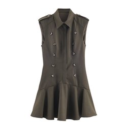 TAOP & ZA 2025 otoño nueva mujer Retro solapa moda con hombreras decoración en capas Vestido corto 8927509
