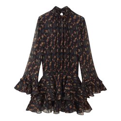 TAOP & ZA 2025 moda temperamento principios de otoño nuevas capas decorativas estampado de flores cuello alto manga larga Vestido corto 8950460